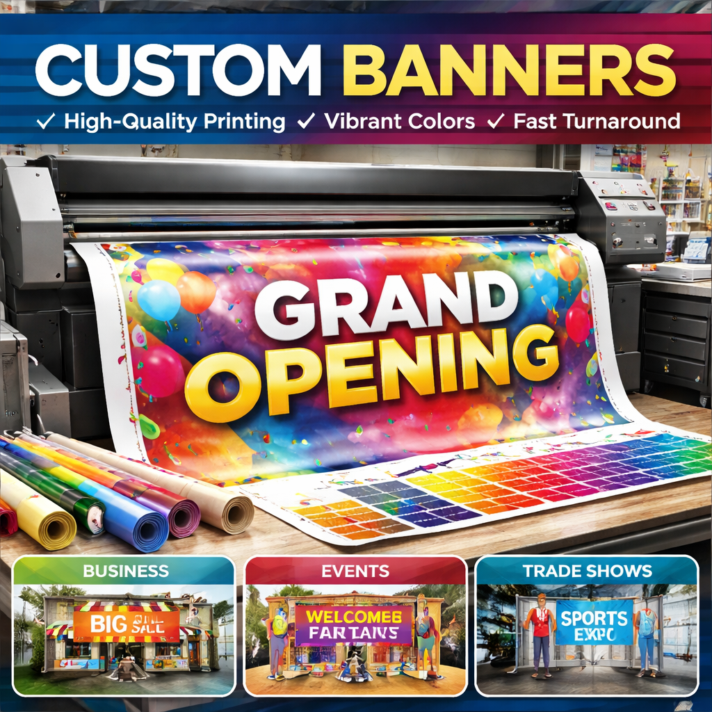 Vinyl stickers and labels are perfect for branding, packaging, and marketing, while custom banners are used for business advertising, events, and promotions.